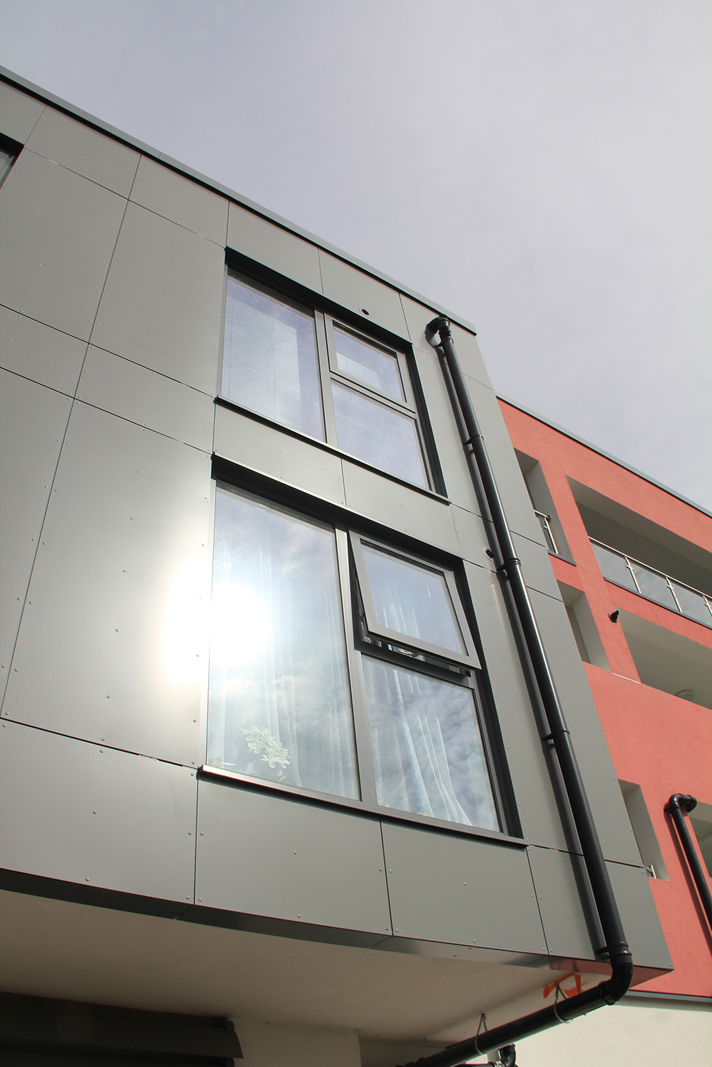 Installation was carried out by Vertec Ltd, acting as main contractor for the project. The panels were installed using a rivet‑fixed system, incorporating colour‑matched VitraFix rivets to ensure a clean and consistent finish across the side elevations and upper levels. This fixing method provided reliable mechanical performance while supporting straightforward installation and inspection on site.
