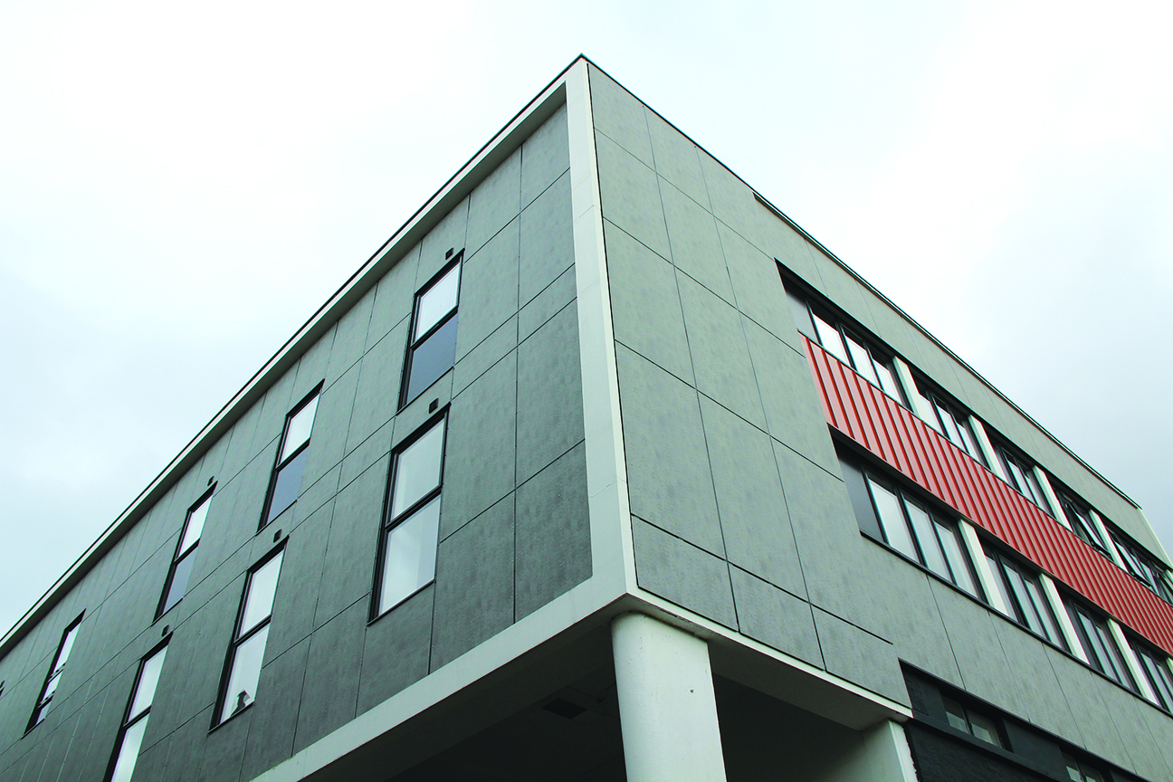 To deliver the façade upgrade, ALB Group appointed HBW Ltd as the main contractor. HBW brought extensive experience in cladding and external envelope solutions, ensuring the project met both aesthetic and safety standards. A total of 527 square metres of Valcan’s Aluminium VitraDual cladding panels were specified and installed across the building’s exterior. The panels were finished in a sleek concrete grey tone, chosen to complement the surrounding environment while giving the building a fresh, contemporary look.