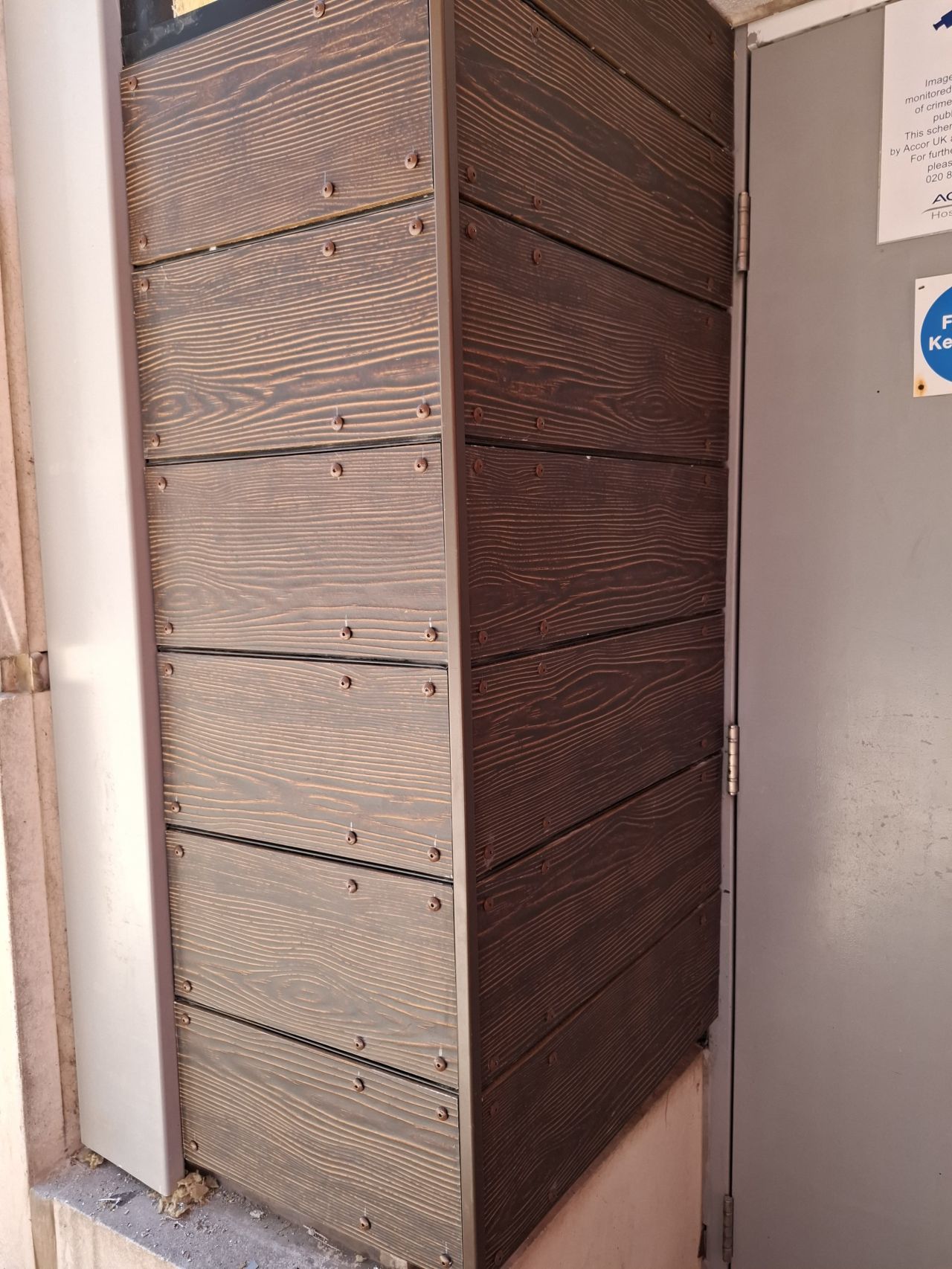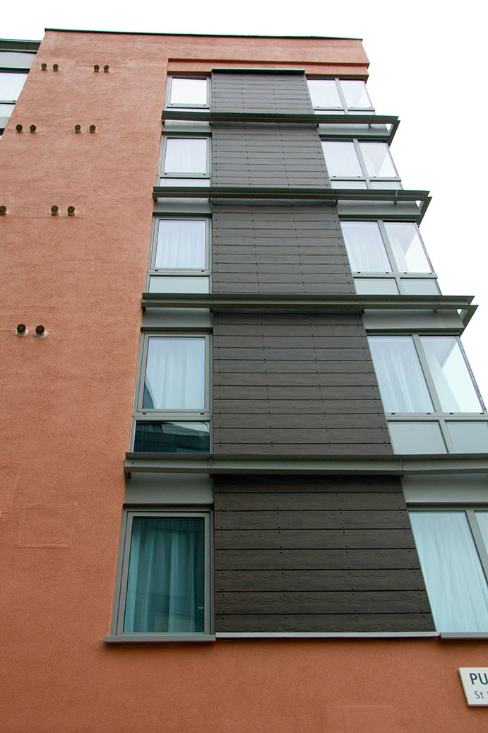 The Evverlap planks in a stained Walnut were specified by DMWR Architects Ltd as a direct replacement for the hotel’s original combustible wooden cladding. Their specification allowed the IBIS Hotel to maintain the aesthetic qualities of a timber façade, while also upgrading the building envelope to a modern, safe, and future‑proof standard.