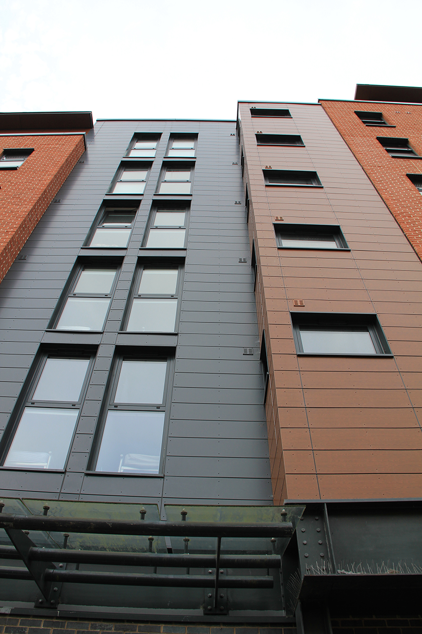 These panels were chosen to replace the building’s original timber cladding, significantly enhancing fire safety while elevating the building’s aesthetic appeal. The Woodcreate finish is meticulously engineered to replicate the natural grain, knots, and textures of real timber, offering a visually authentic yet low-maintenance alternative that retains the warmth and character of wood with the performance benefits and safety of modern materials.