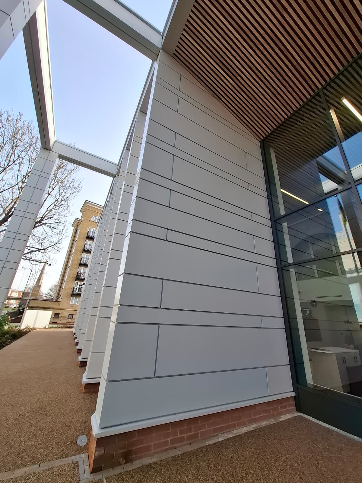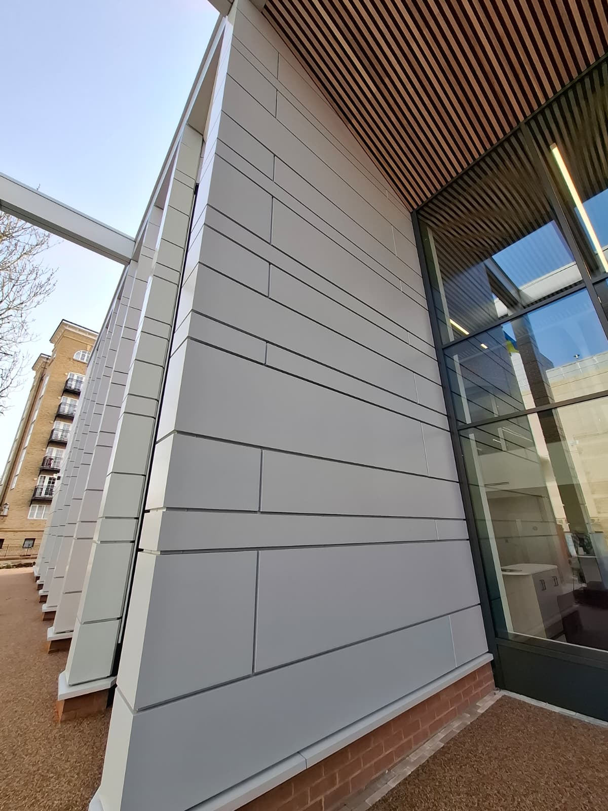 Delineate Design Ltd carried out the installation of the cassette panels, ensuring precision across complex junctions and integration with the new extension areas. VitraDual’s ease of fabrication enabled efficient on-site progress and helped meet the programme targets set by Morgan Sindall.